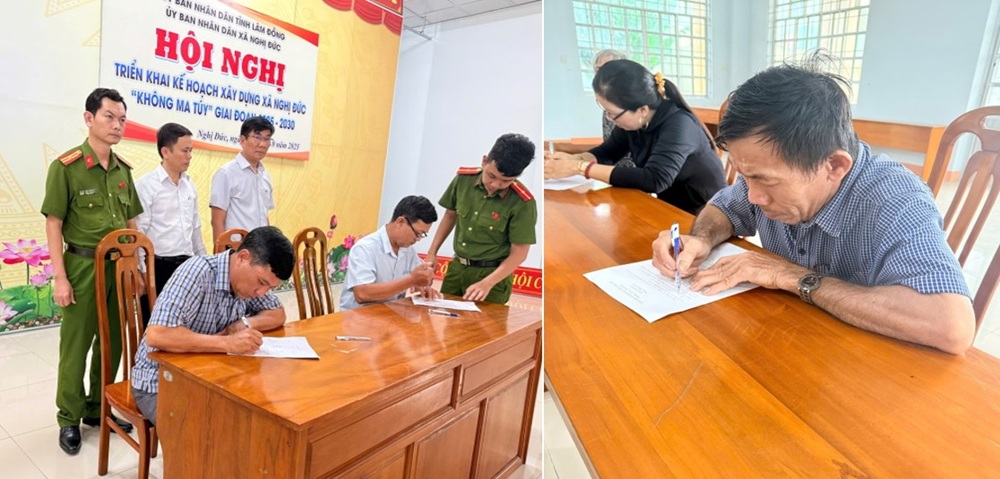 Cũng trong dịp này, đại diện các thôn, cơ quan, doanh nghiệp, cơ sở kinh doanh có điều kiện và cơ sở giáo dục trên địa bàn đã ký cam kết tham gia xây dựng xã Nghị Đức “không ma túy” giai đoạn 2025 – 2030.