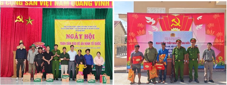 Công an xã tặng quà hộ gia đình chính sách và người dân giao nộp vũ khí