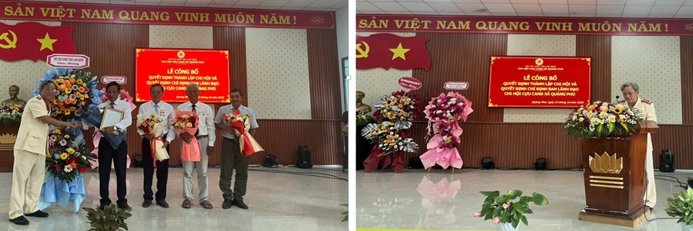 Thực hiện hướng dẫn của Ban Thường vụ Hội Cựu Công an nhân dân tỉnh Lâm Đồng, Công an xã Quảng Phú đã phối hợp tổ chức Lễ công bố Quyết định thành lập Chi hội và chỉ định Ban Chấp hành lâm thời gồm 24 hội viên. Đồng chí Hồ Tràng (nguyên Trưởng Công an xã Quảng Phú) được chỉ định làm Chi hội trưởng. Việc thành lập Chi hội nhằm tập hợp, đoàn kết các đồng chí nguyên là cán bộ, chiến sĩ Công an đã nghỉ hưu, xuất ngũ, chuyển ngành nhưng vẫn giữ vững phẩm chất cách mạng, tinh thần “Vì nước quên thân, vì dân phục vụ”.