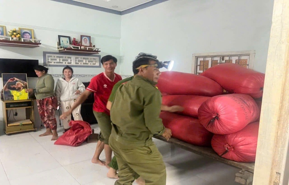 Lực lượng an ninh, trật tự cơ sở xã Tân Thành hỗ trợ Nhân dân chống lụt năm 2026