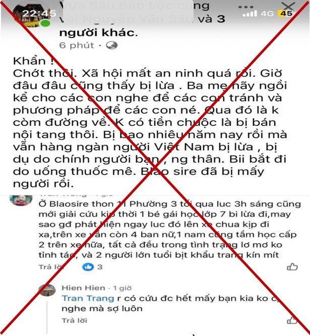 Công an phường 3 Bảo Lộc khẳng định sự việc không liên quan đến các hành vi lừa đảo hay mua bán người. Việc tung tin giả, bịa đặt là hành vi vi phạm pháp luật, gây mất an ninh, trật tự, và sẽ bị xử lý nghiêm theo quy định.