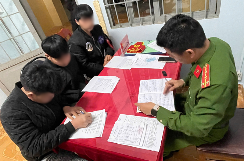 Bằng các biện pháp nghiệp vụ, Công an xã Ka Đô đã phối hợp với Đội Cảnh sát giao thông Đường bộ số 1 – Phòng Cảnh sát giao thông Công an tỉnh Lâm Đồng tiến hành xác minh, làm rõ các đối tượng liên quan gồm: N.T.T.N (17 tuổi) thường trú tại xã D’Ran, tỉnh Lâm Đồng; N.M.T (18 tuổi) và V.Đ.N.M (16 tuổi) cùng trú tại xã Ka Đô, tỉnh Lâm Đồng. Các đối tượng cùng người đại diện hợp pháp đã được mời đến trụ sở Công an xã để làm việc.